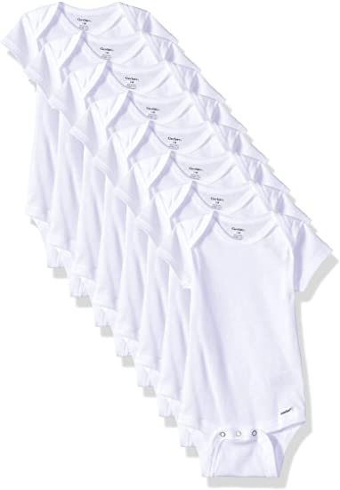 - Includes eight white Gerber short sleeve onesies bodysuits